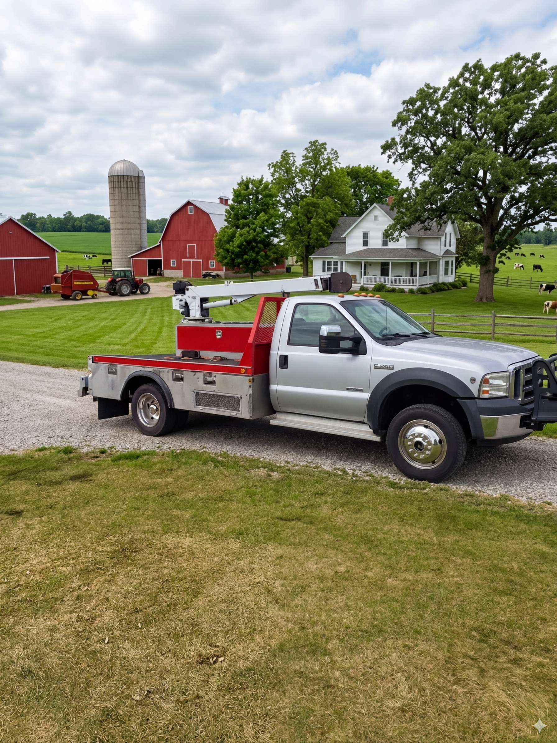 We have a 5,000 lb 24 foot crane attached to our truck, so we can handle most situations without a tractor on-site. We are able to winch and pull cattle from barns and tough situations.